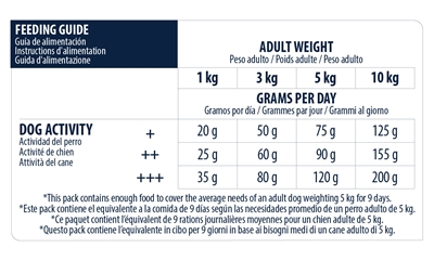 – Voer speciaal voor kleine honden (tot 10 kg), met maag- of huidproblemen