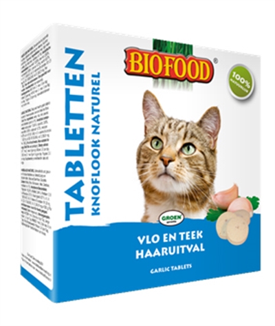 De BF Petfood (voorheen Biofood) Kattensnoepjes Bij Vlo Naturel 100 st zijn smaakvolle en gezonde koud geperste knoflook tabletten met knoflook, aminozuren, vitaminen (A, B, D en E) en mineralen. Weg met vlooien en teken! Dit natuurlijke product ondersteunt huid, vacht (o.a. haaruitval) en darmflora en is glutenvrij. De snoepjes hebben een optimale werking bij dagelijks gebruik. Aanvullend voer voor alle kattenrassen, van kitten tot senior.