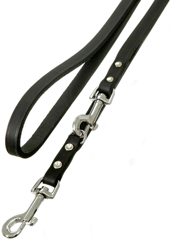 Mooie stijlvolle trainingslijn met metaal beslag. De lijn is gemaakt van zwart leder, heeft een breedte van 18 mm en is 2 meter lang.