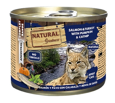 Dit overheerlijke zalm- en kalkoenrecept met pompoen en kattenkruid kent een goede balans tussen de zalm en het kalkoenvlees. De voeding is 100% natuurlijk en bevat géén granen, géén vulstoffen en géén toegevoegde suiker of toegevoegd zout.