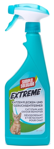 Simple Solution Stain & Odour Vlekverwijderaar Kat Extreme 750 ml is een sterke vlekkenverwijderaar en geurverwijderaar in spray vorm. Sommige katten markeren hun territorium in huis of hebben wel eens een ongelukje, wat zorgt voor vervelende vlekken en geurtjes. Met de Stain & Odour Vlekverwijderaar van Simple Solution worden de gemarkeerde plekken grondig schoongemaakt. Ook helpt deze spray het herhalen van markeren tegen te gaan.