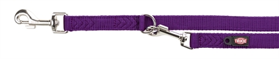 De Trixie Premium Hondenriem Dubbelgestikt Verstelbaar Violet 200 x 1 cm is een nylon looplijn voor de hond van singelband, drievoudig verstelbaar en met extra oogjes. Zo is de lijn geschikt voor meerdere doeleinden en kan je jouw hond op een lengte laten lopen die voor de situatie het meest geschikt is. Je kunt hem eenvoudig verstellen door de musketonhaak aan één van de ringen te klikken. Ook de andere kant eindigt in een musketonhaak, voor gemakkelijke bevestiging aan halsband of tuig. De extra oogjes zijn ook geschikt om bijvoorbeeld een penning of lampje aan te hangen. Strak, degelijk en toch heel functioneel!